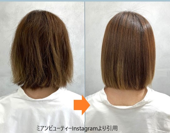 ※工程は縮毛矯正、酸性ストレートと同じですが、強い癖を伸ばすメニューではありません。